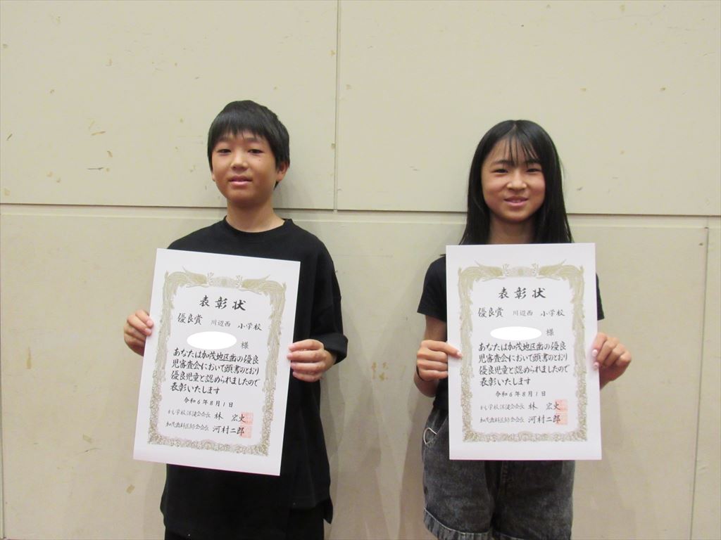 川辺西小から2名の児童が参加し、優良賞を受賞しました。