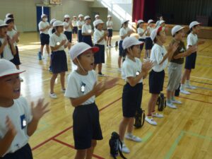 今朝の朝活動は、赤団・白団がそれぞれ体育館とワークスペースに集まり、団員みんなで合同エール練習を行いました。休み明けでしたが、今日も北っ子は朝から元気いっぱい。声がかれるくらい全力で、大きな声を出していました。また、団長を中心とした団リーダーたちは、10分間の練習をより充実させるために、練習の仕方も工夫しながらテンポよく進めていました。