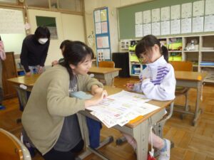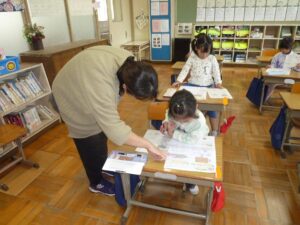 今日は、その第一弾として、5時間目に1年生の算数と3年生の書写の授業に、学習サポーターとして地域の方々に入っていただきました。この方々は、「すぐーる」で募集した学習支援の呼びかけに応えて集まってくださった方々です。