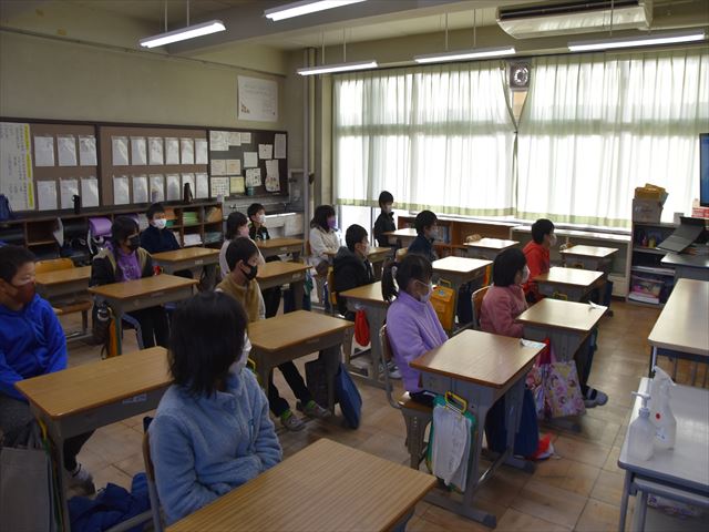 2学年の学年閉鎖が解除され、本日全学年がそろいました。全校朝会があり、仲間と一緒に学習できることの大切さについて確認しました。まだまだコロナ感染の勢いは弱まっていませんが、感染対策を行い、子どもたちが安心して学校生活が送ることができることを願っています。