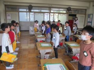 今日、1年生は、学校にどんな教室があるのかを知るために、学校探検を行いました。その1年生を支えてくれたのが、2年生のお兄さん、お姉さんです。まずは、2年生が1年生の教室に行って、学校探検の約束などの話をしてくれました。