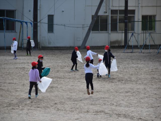 18日の午後の一コマです。ふとグランウドを眺めてみると1年生の仲間がビニル袋をもって、走り回っていました。もっていたビニル袋は空気が入って膨らんでいました。その様子でまたまた走り出す1年生。元気いっぱいが何よりです。