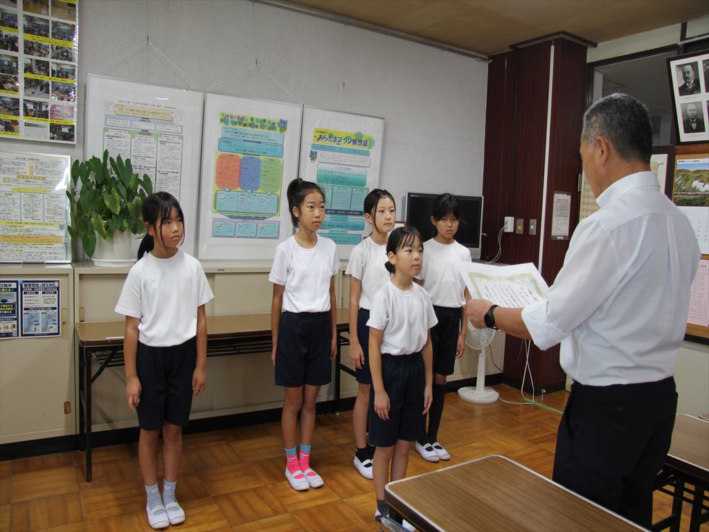 校長室で表彰を受けた川辺ジュニアバレーのみなさんは、「次の大会もがんばります。」と力強く語ってくれました。