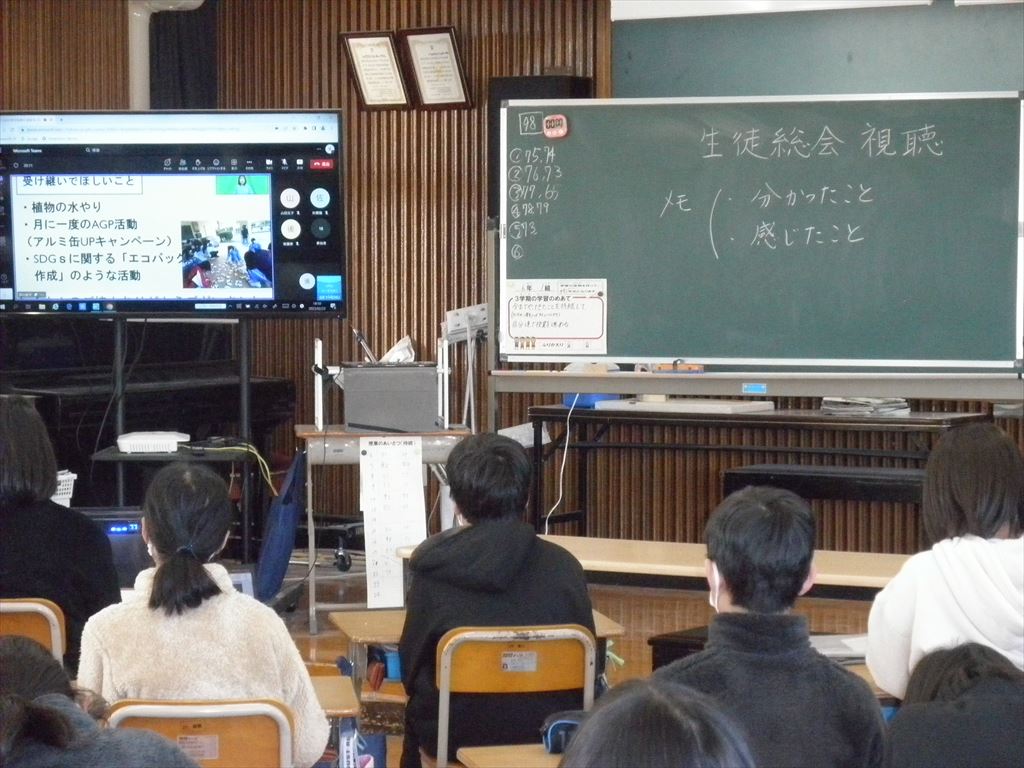 2月22日(水)6年生が川辺中学校の生徒総会を、リモートで参観しました。