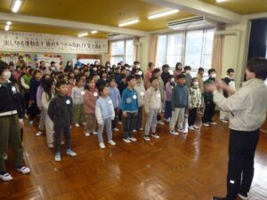 さて、今日から後期後半の学校生活がスタートしました。全校集会では、みんなで校歌を歌った後、「節のテーマ」についての話を聞きました。1月7日~3月26日までの節のテーマは、「自分大好き・クラス大好き・感謝の気持ち」です。