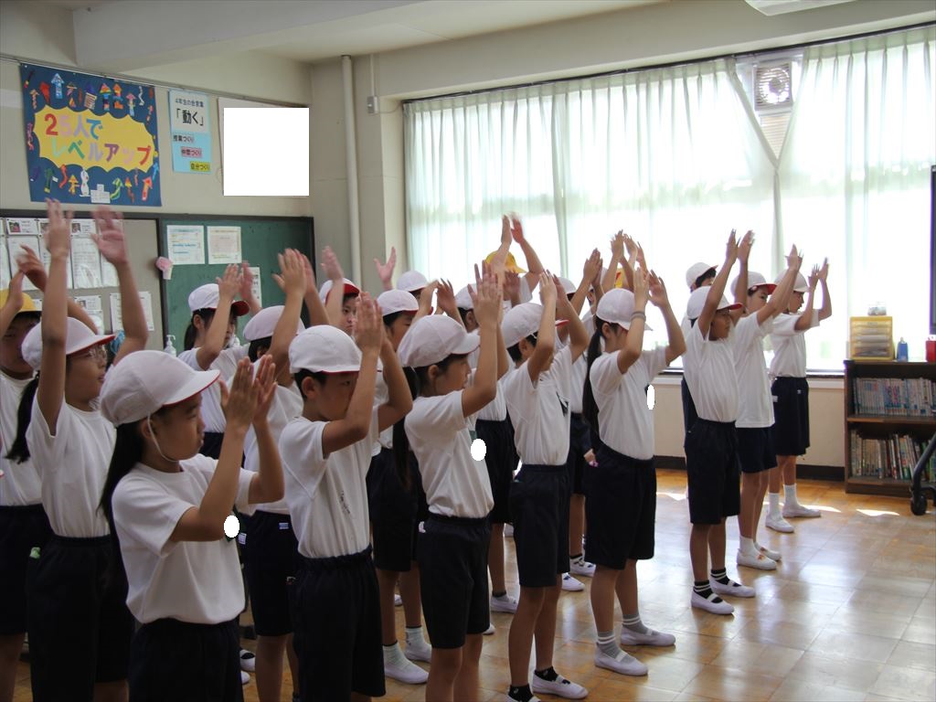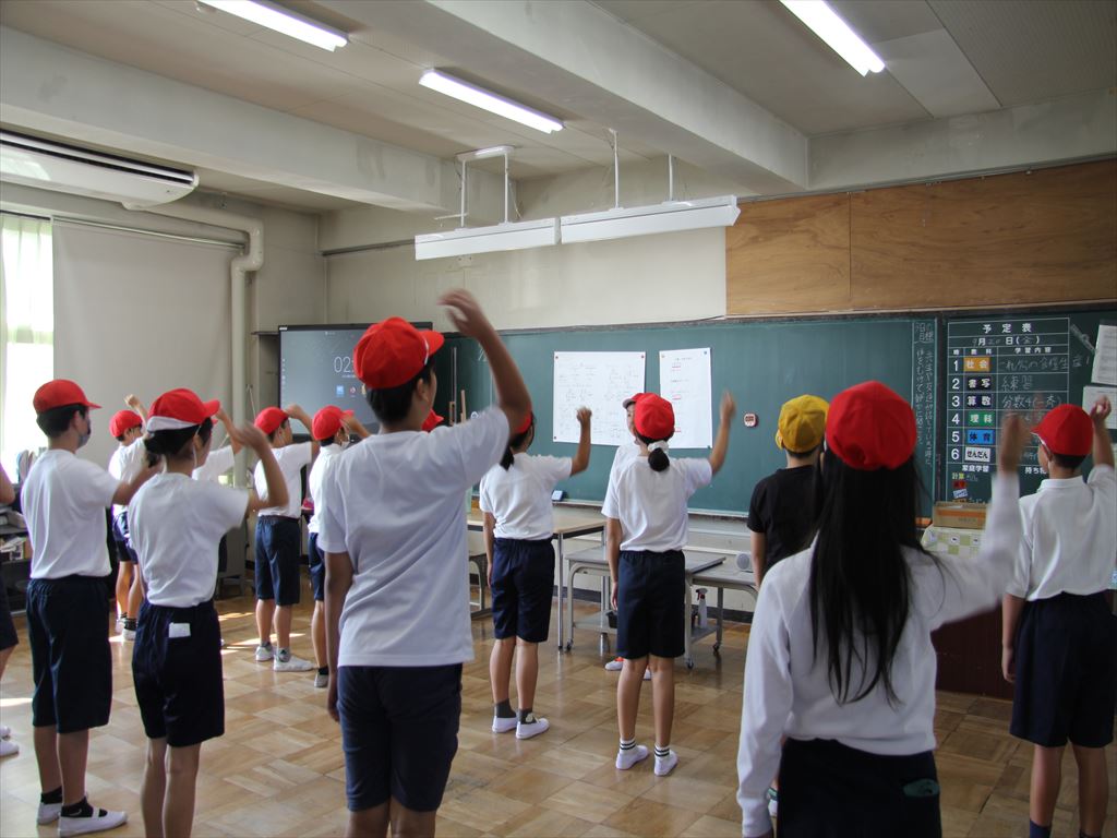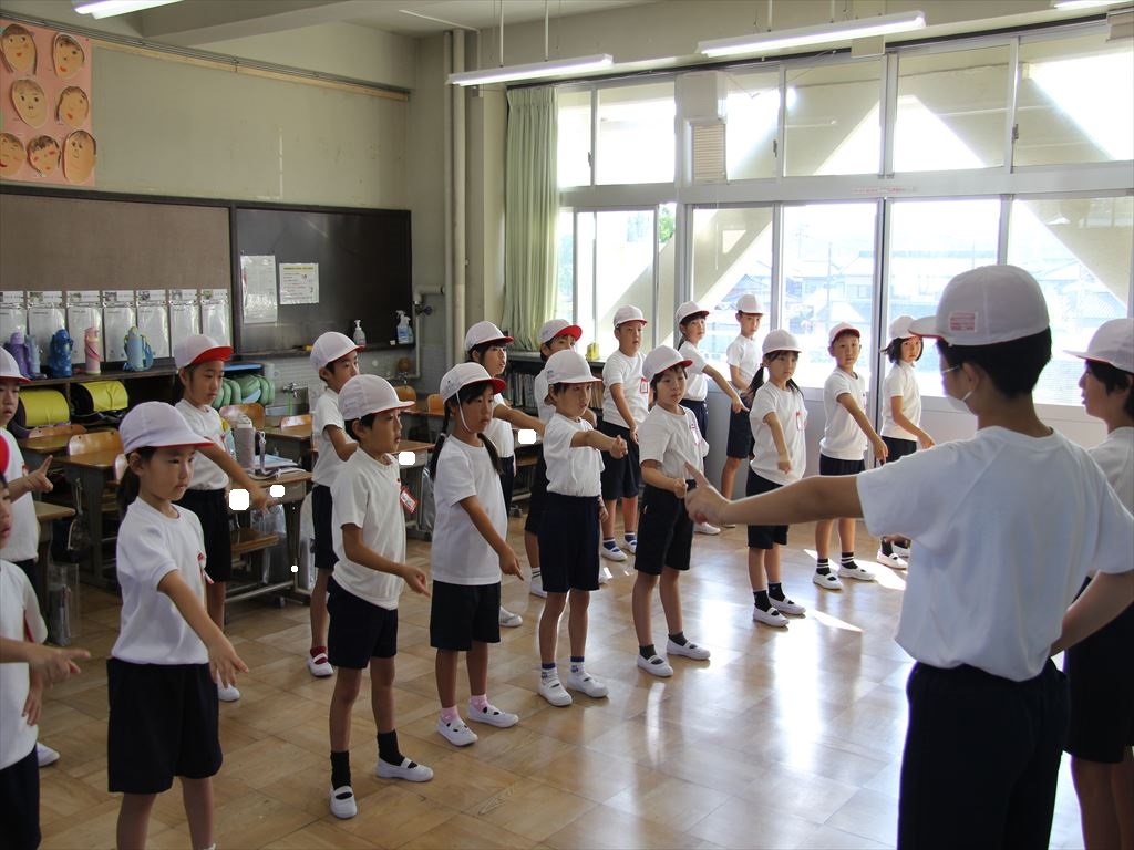 高学年の応援団員が中心となり、振り付けなどを各クラスに教えています。