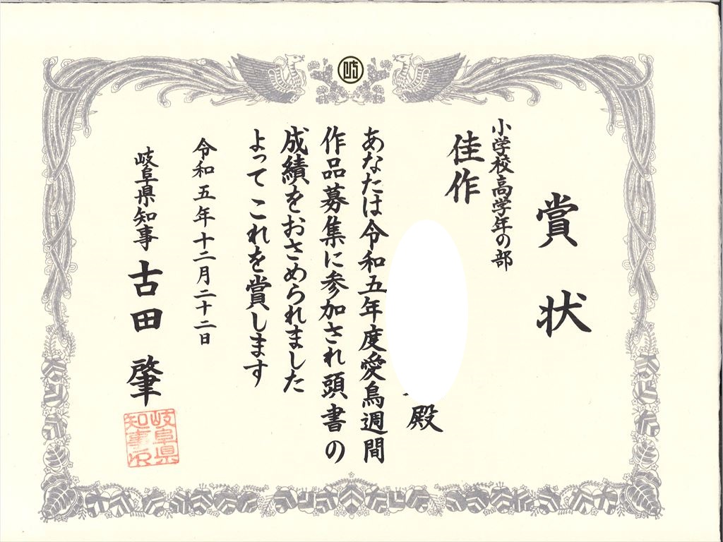 令和5年度愛鳥週間ポスター作品募集に応募した本校の6年生の児童が、佳作を受賞しました。おめでとうござます。