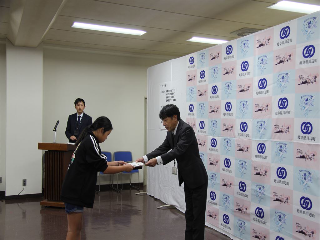 川辺町明るい選挙啓発ポスターコンクールで、特選に選ばれた児童1名が、11月24日(日)の中央公民館での表彰式に参加しました。
