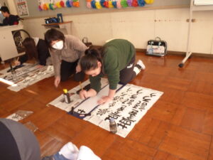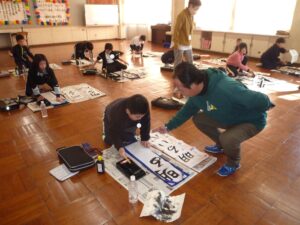 また、普段の書写の授業と同様、この書き初め会にも地域サポーターの方々が学習支援に来てくださいました。子ども達は、地域サポーターの方々からアドバイスを受けながら、少しでも上手に書こうと頑張っていました。
