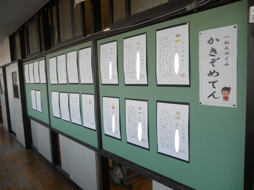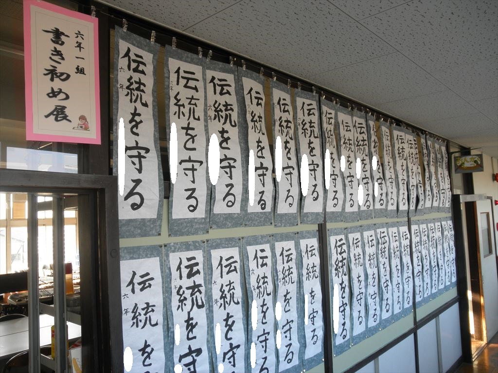学校だよりの「1月の予定」の欄にお知らせした書初め展の準備が整いました。ぜひご来校ください。