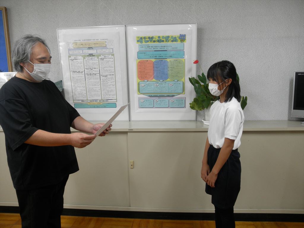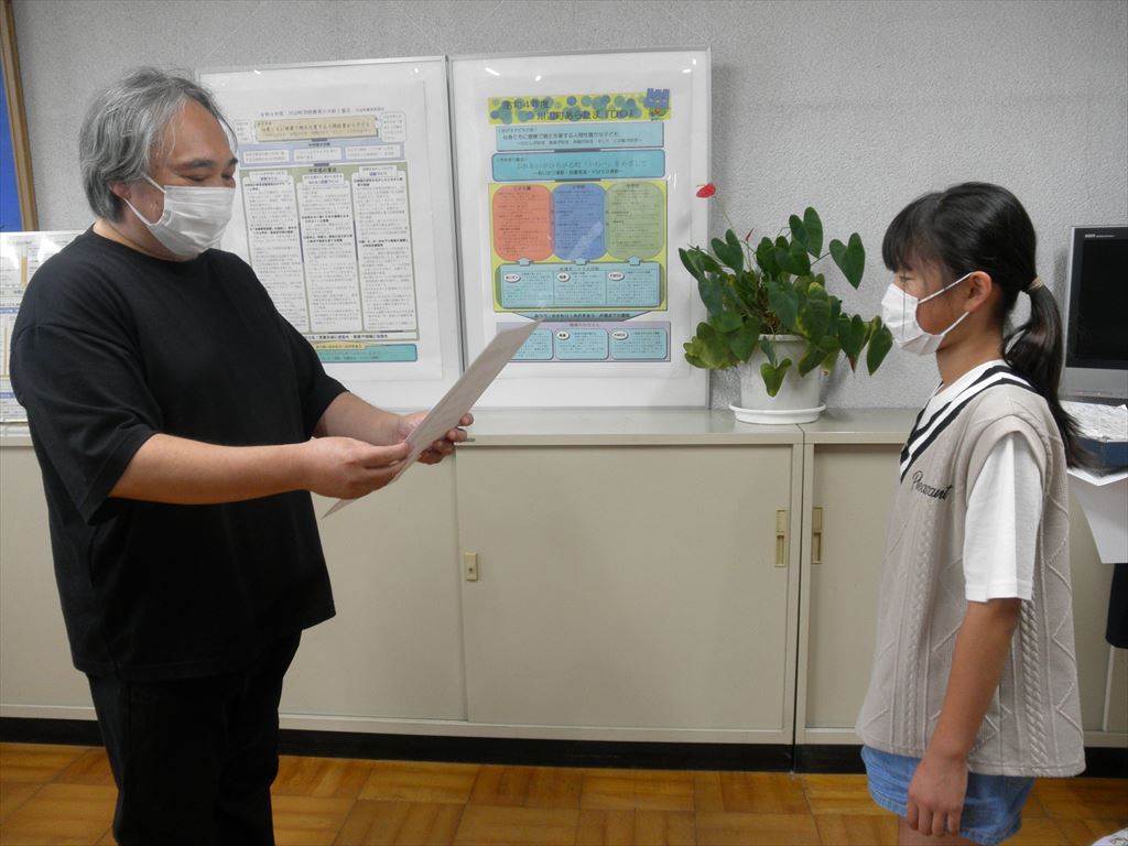 コロナ禍のため全体での表彰式は行われませんでしたので、西小の学校歯科医をご担当いただいている加藤歯科の加藤先生に西小にお越しいただき、校長室で表彰式を行いました。