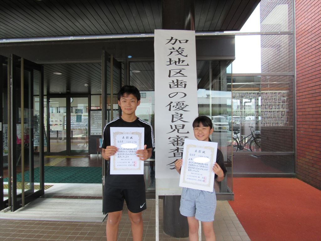 8月3日(木)川辺町中央公民館で「加茂地区歯の優良児審査会」が行われ、本校の児童2名が参加し、優良賞を受賞しました。