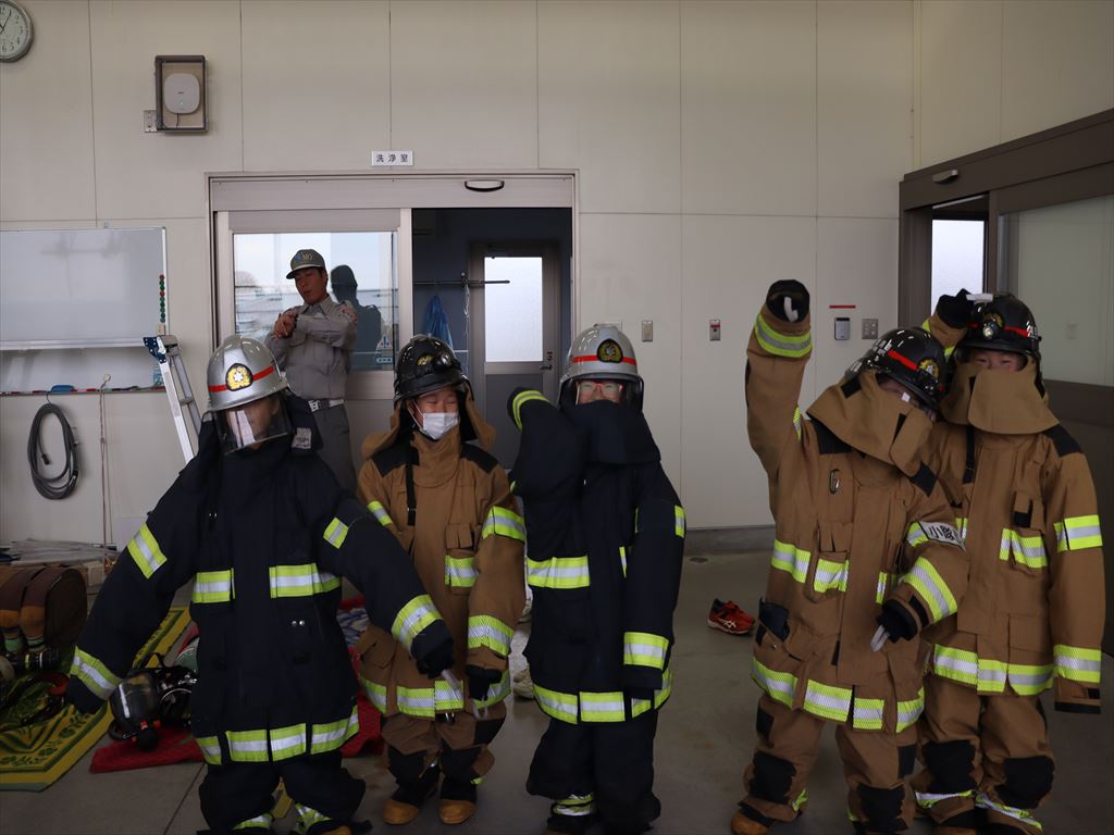 また、火災現場に行くときに着る防火服を実際に着させていただき、その重さに大変驚きました。