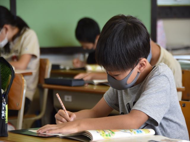 4年2組の学習の様子です。担任の先生がいなくても一生懸命学習できる集団に成長しています。取り組む学習内容を理解している子どもたちでした。