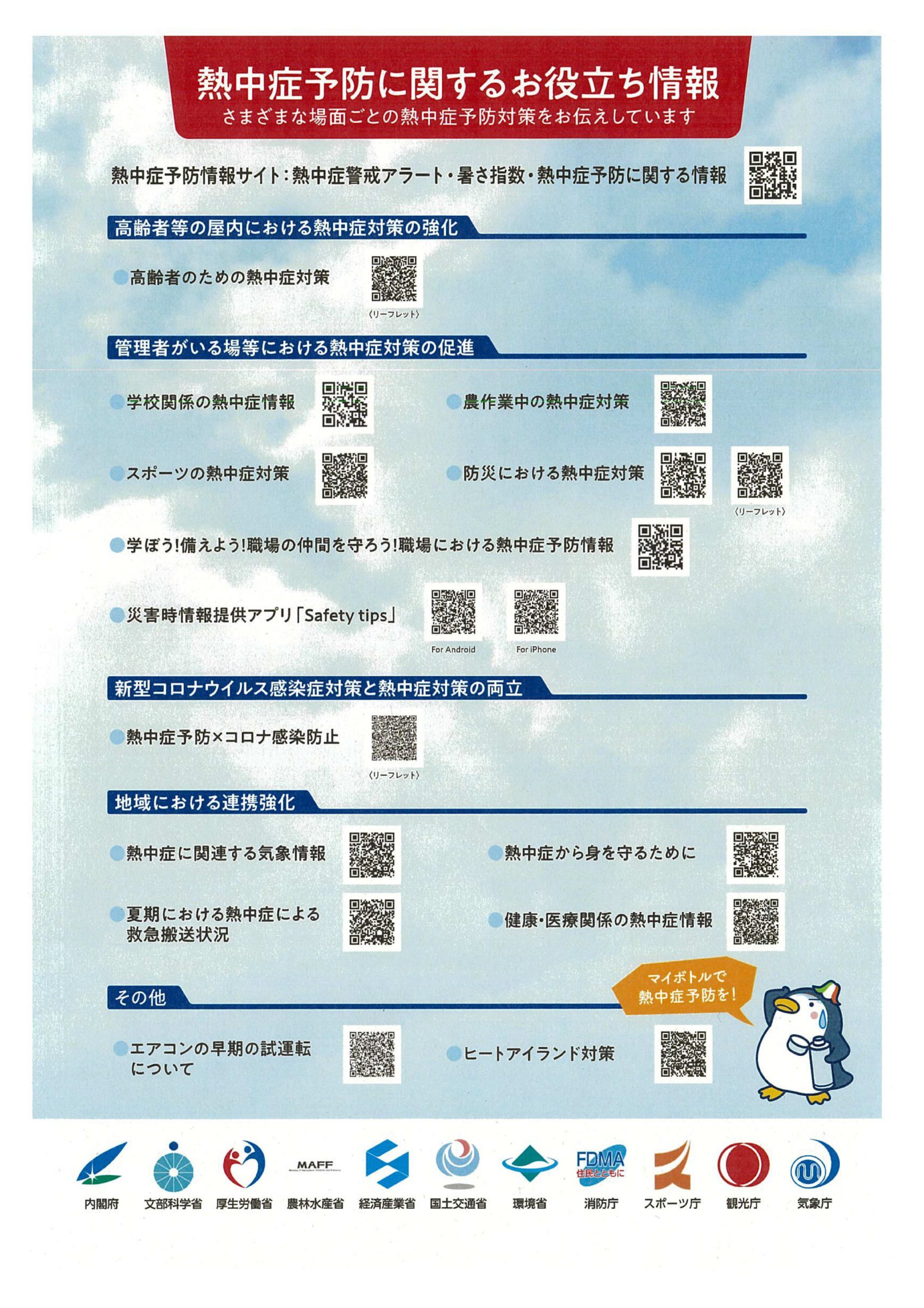 夏休み中もコロナ対策へのご協力をいただきありがとうございます。さて、8月3日(水)に川辺町から「熱中症対策の更なる強化について」というメールが配信されました。保護者の皆様には、お願いばかりとなって申し訳ございませんが、コロナ対策へのご協力とともに熱中症対策についてもご配慮いただきますようお願いいたします。以下に「熱中症予防のためのポイント」がまとめられたリーフレットを添付させていただきました。参考資料としてご活用いただきますようお願いいたします。