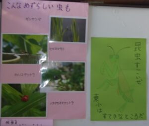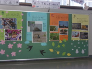 用務員の今井さんが撮影した写真「特別展 発見! 東小の生き物たち」を2階西階段の掲示板に展示しています。学校にお越しの際は、ぜひご覧ください。