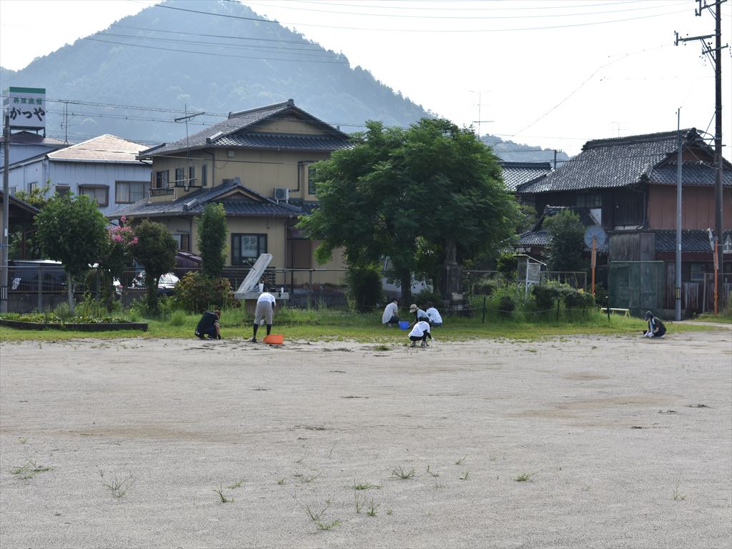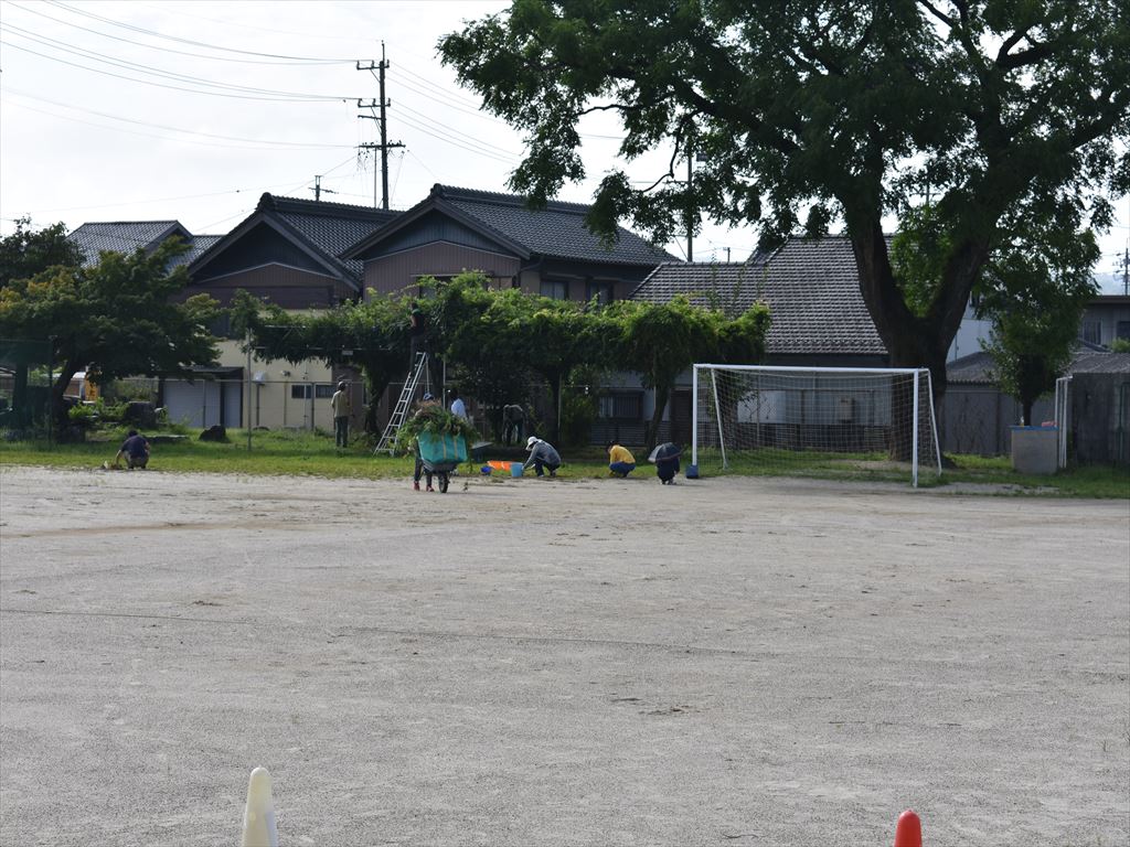 今回は、PTA本部役員様、PTA環境委員様、中川辺下・西栃井・下川辺の保護者様に参加いただき、運動場の草刈りと校舎内の窓ふきにご協力いただきました。