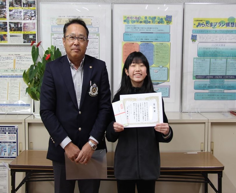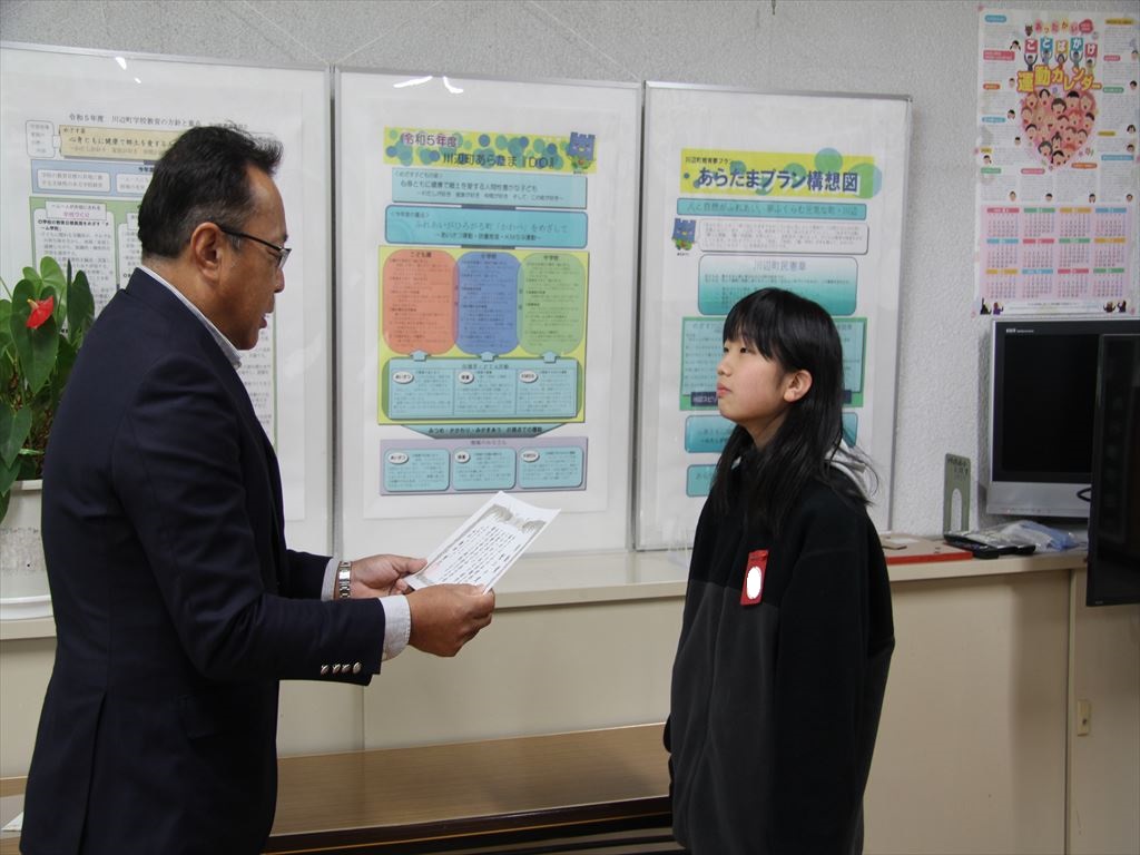 校長室でライオンズクラブ様から賞状を受け取りました。