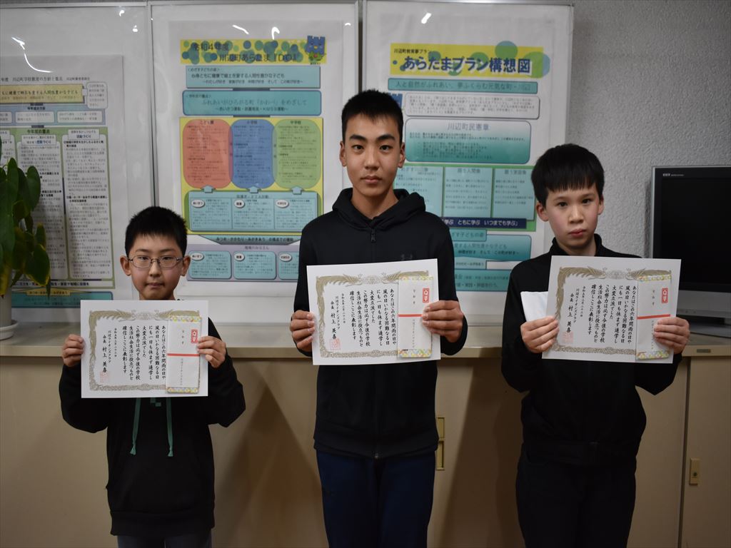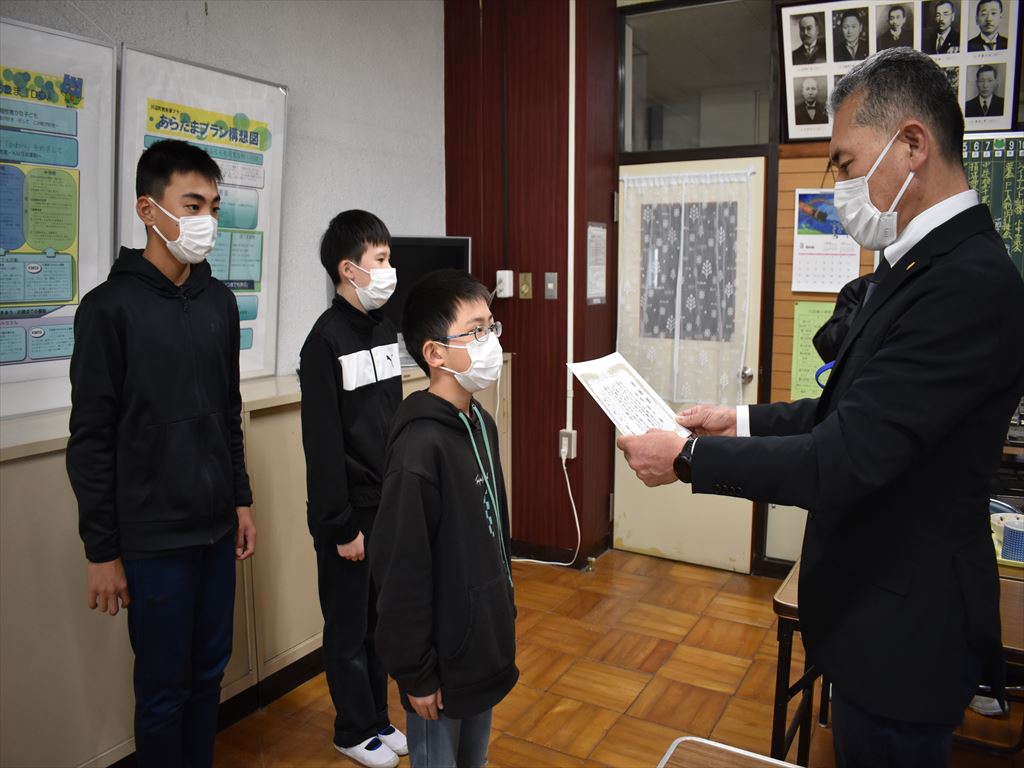 本校の6年生児童3名が、川辺ライオンズクラブ様より皆勤賞をいただきました。3名は6年間欠席することなく学校生活を送りました。おめでとうございます。