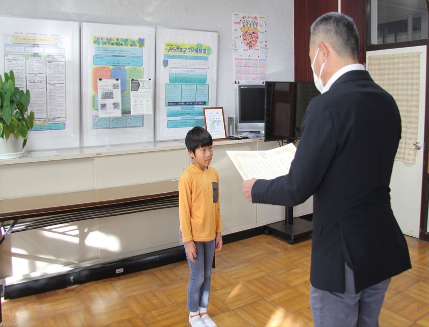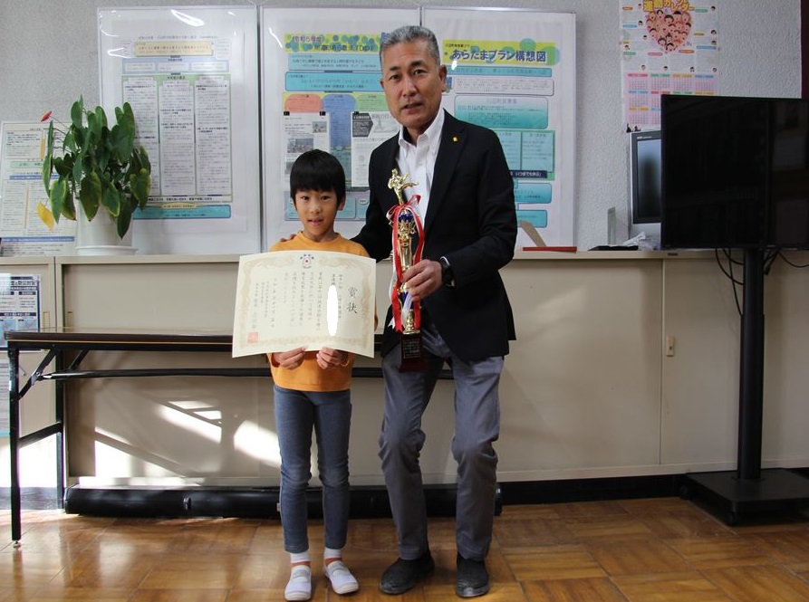 賞状とトロフィーを手に、校長室に報告に来てくれた児童は、とてもうれしそうな表情で「これからも練習をがんばります。」と語ってくれました。