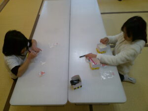 それぞれ自分で目や耳や角を貼り、完成させていました(^^)/