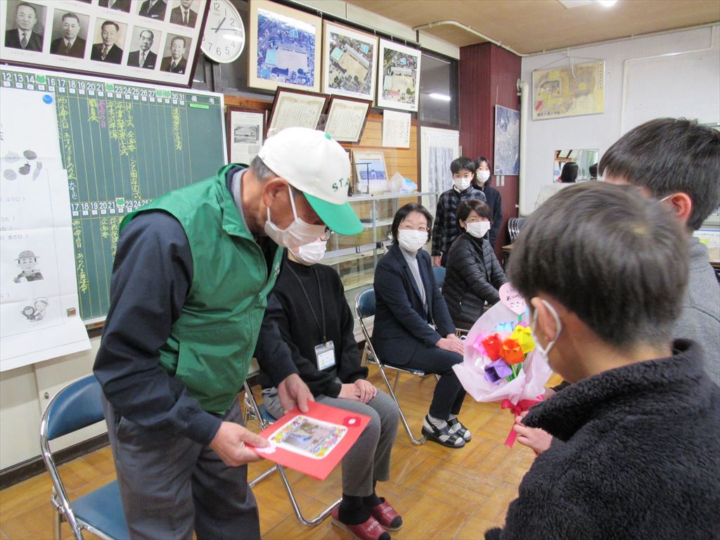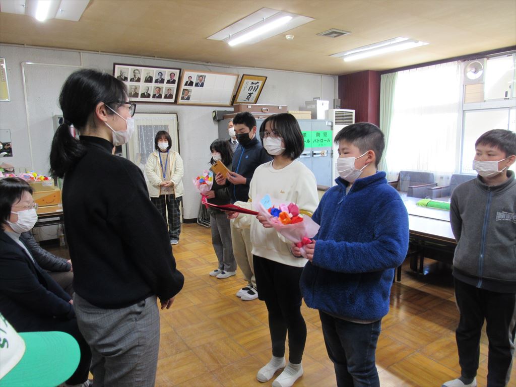 感謝の手紙と手作りの花束を渡し、感謝の気持ちを伝えました。