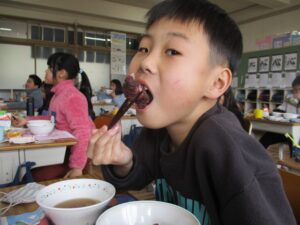 里芋おはぎは、給食で、40年以上も続く伝統の味です。