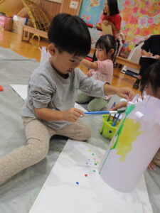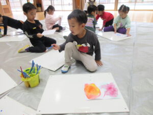 クレヨンや絵の具を使って楽しみました。