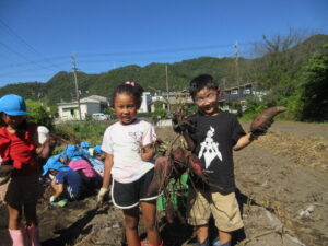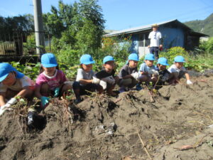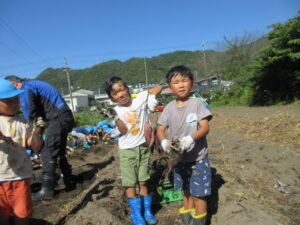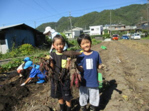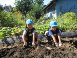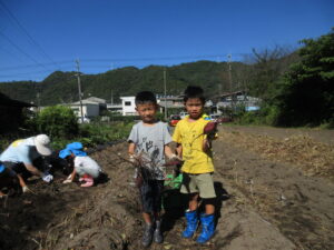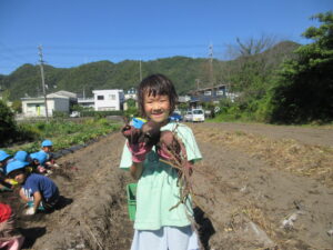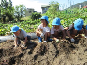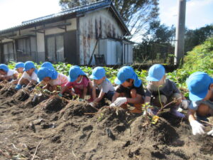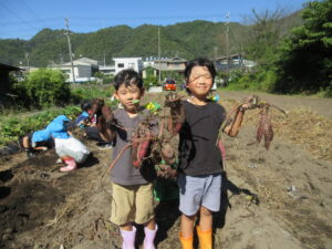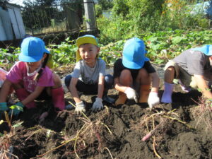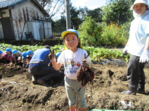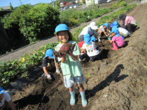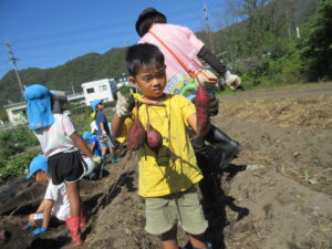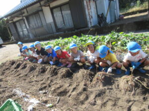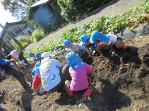 大豊製紙さんが育ててくださったさつま芋を、みんなで堀に行きました。