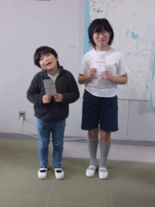 「第5回本の日読書感想文コンクールスクールEライブラリの小学生の部」において、入賞した2名の表彰を行いました。これからも、読書に親しみ、心の栄養を養いましょう。