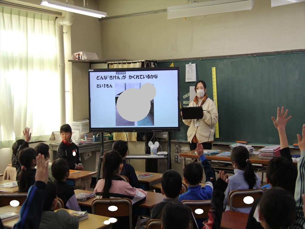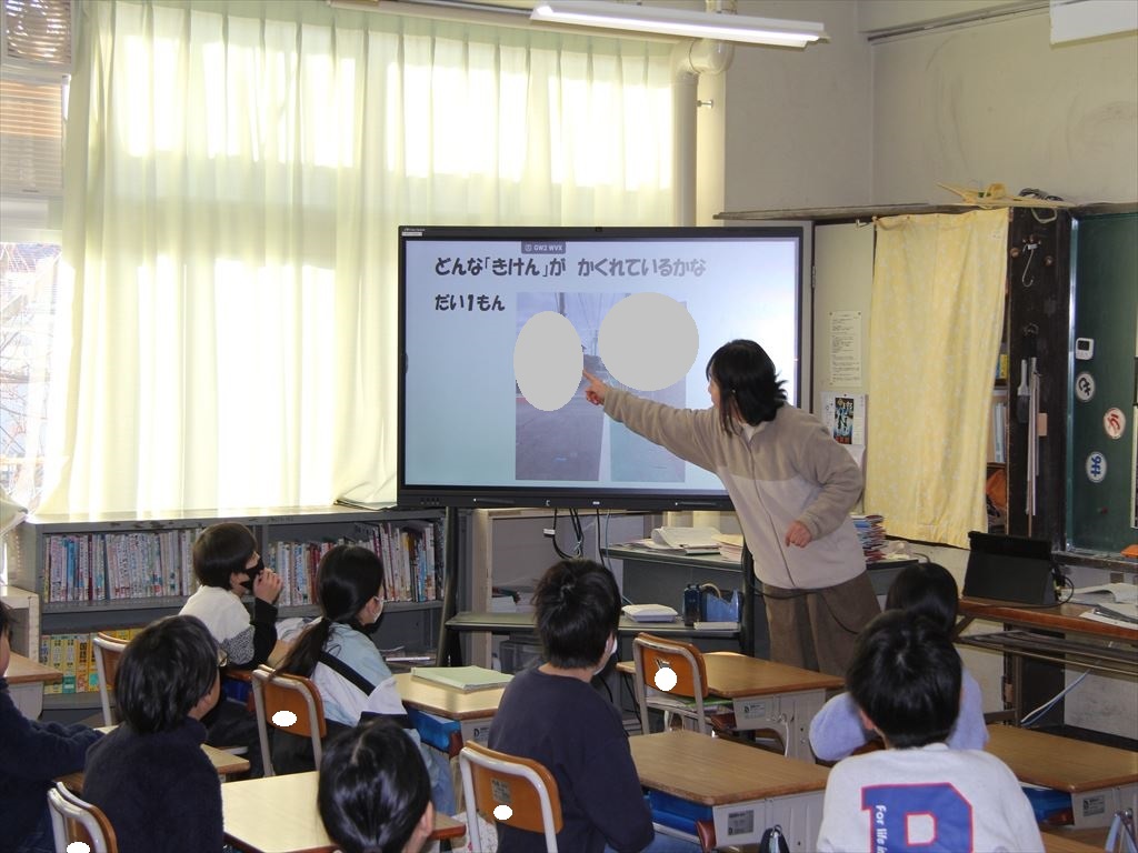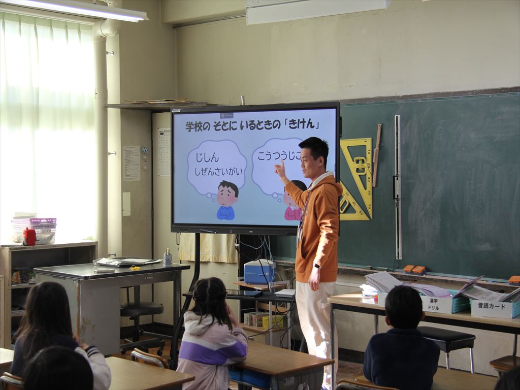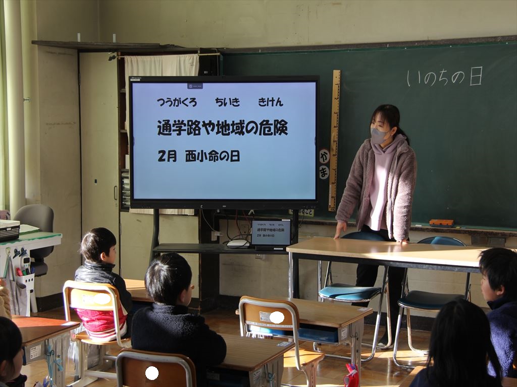毎月1回、朝の活動で行っている「西小命の日」で、学校外で自分の命を守ることについて学習しました。