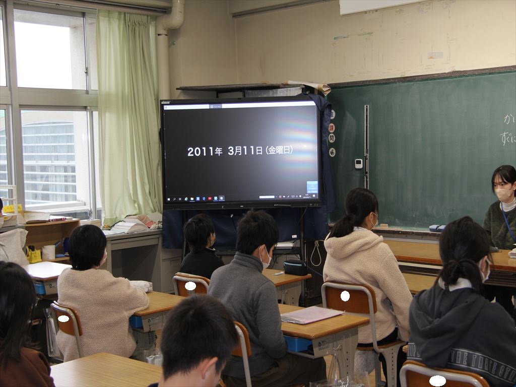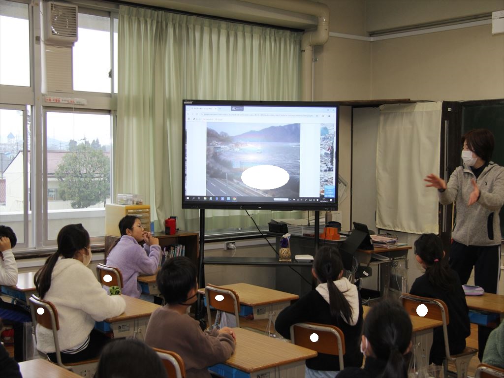 自分たちがまだ生まれていない頃に起きた地震の映像を見て、地震の恐ろしさや日ごろからどのような備えをしておくことが必要なのかを話し合いました。