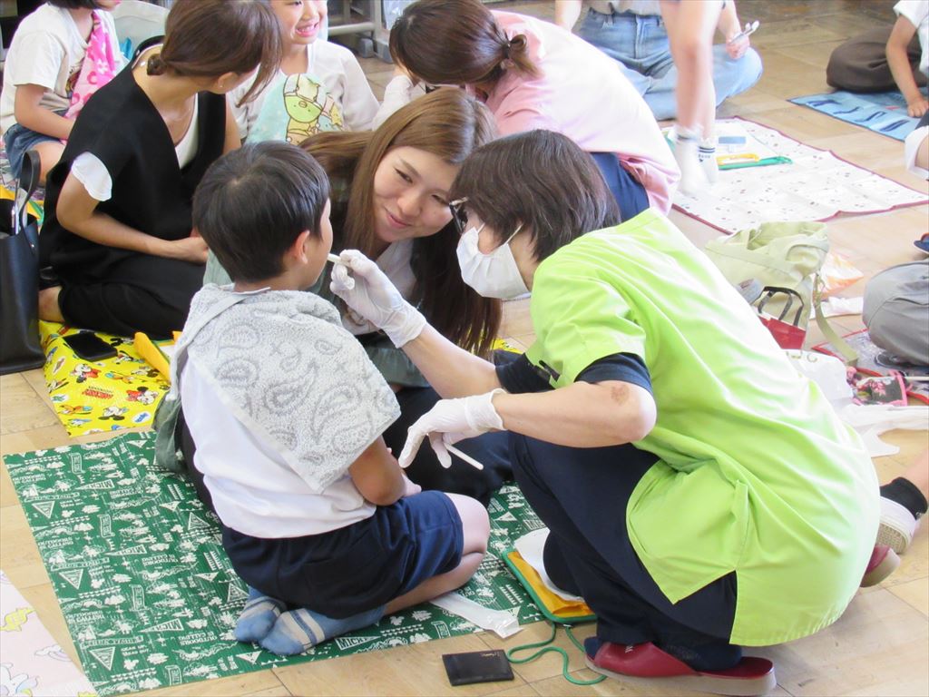 歯科衛生士の先生方が順番に回りながら、気を付けると良い点などを教えてくださいました。