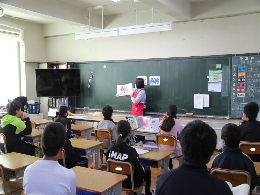 「ぐりぐら」さんと「ブレーメン」さんのたくさんの方々に、各学級に入っていただき、全校一斉で読み聞かせを行うことができました。