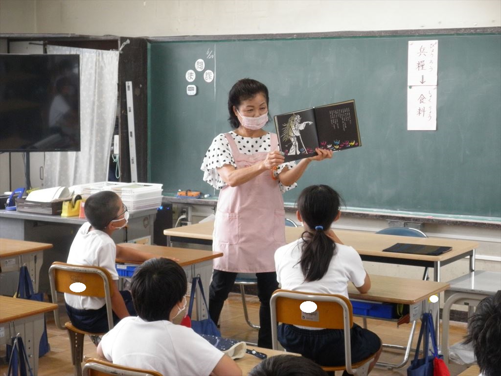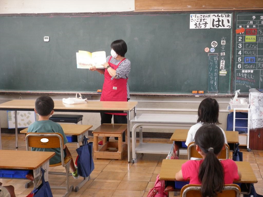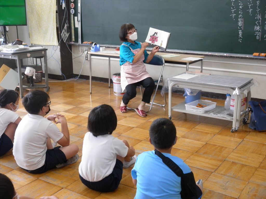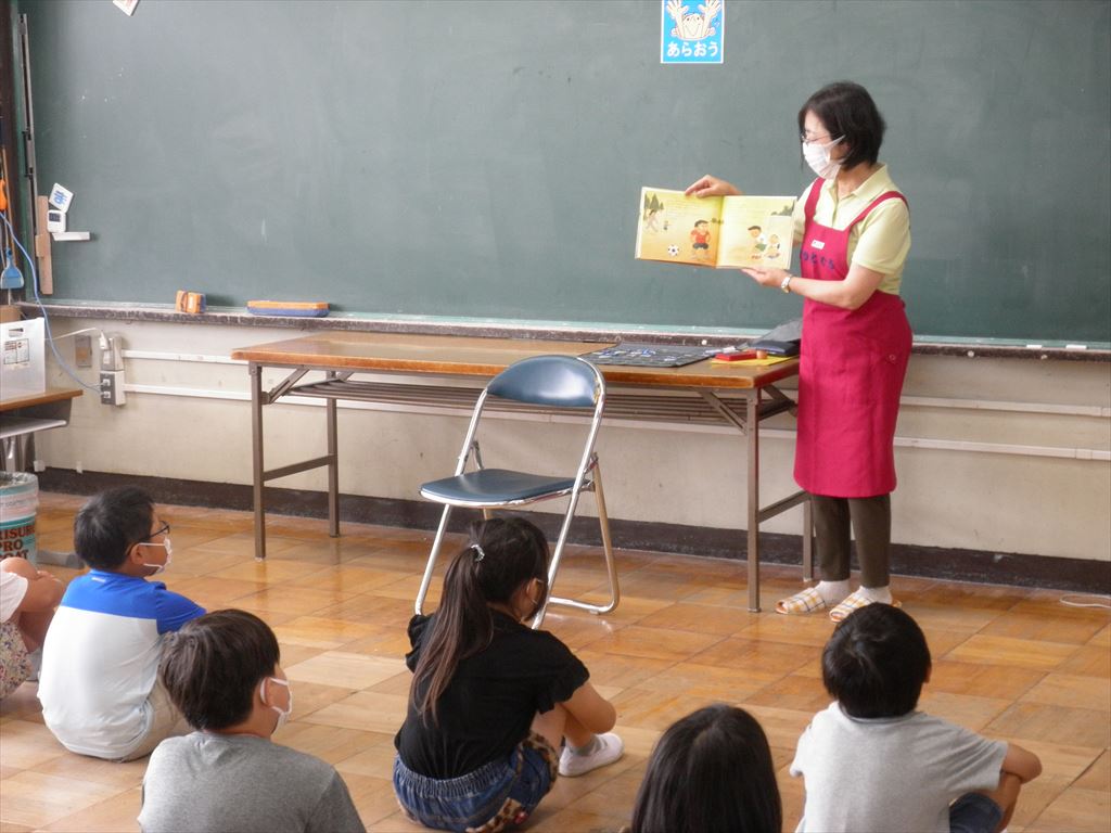 6月21日(火)いずみ・3・4・5・6年生が、朝活動の時間に読み聞かせを行いました。
