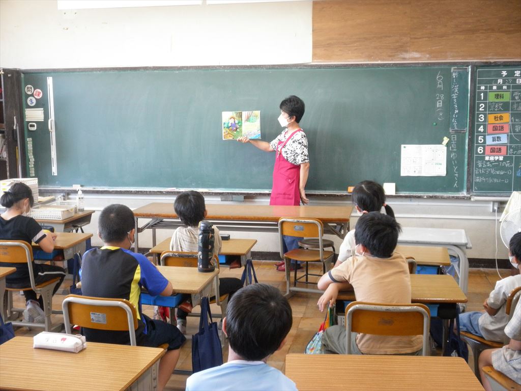 6月28日(火)の朝の活動の時間に、4年生が読み聞かせを行いました。