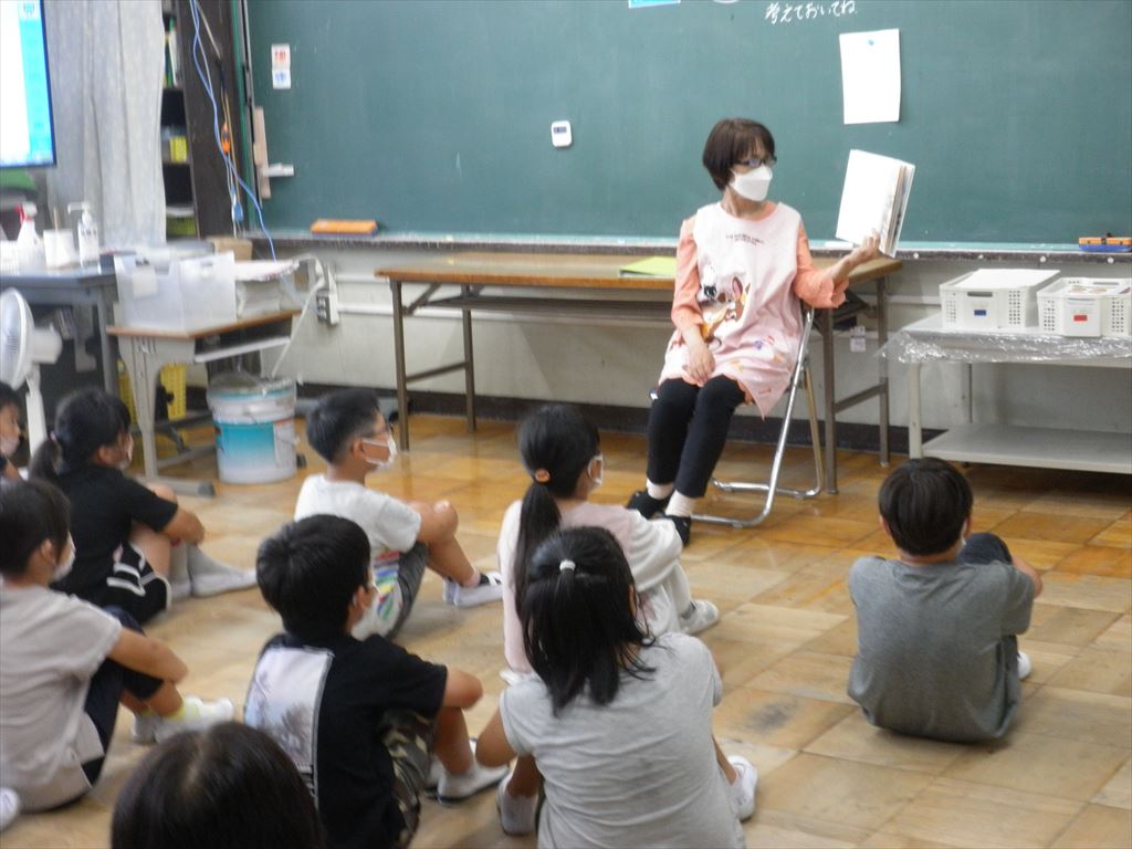 7月12日(火)いずみ・ほほえみ・1・2・3年生が、朝の活動の時間に読み聞かせを行いました。