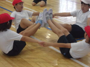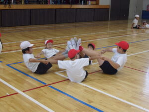 中学年は、運動会の団体演技種目で「組まない体操」を行います。本日は、体育館で4人技の練習を中心に取り組みました。徒手体操の美しさを表現できるように頑張っていますので、当日を楽しみにしていてください。