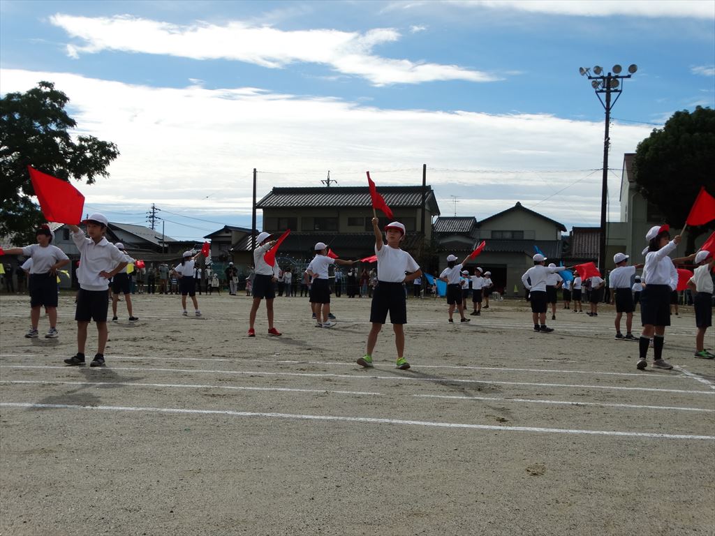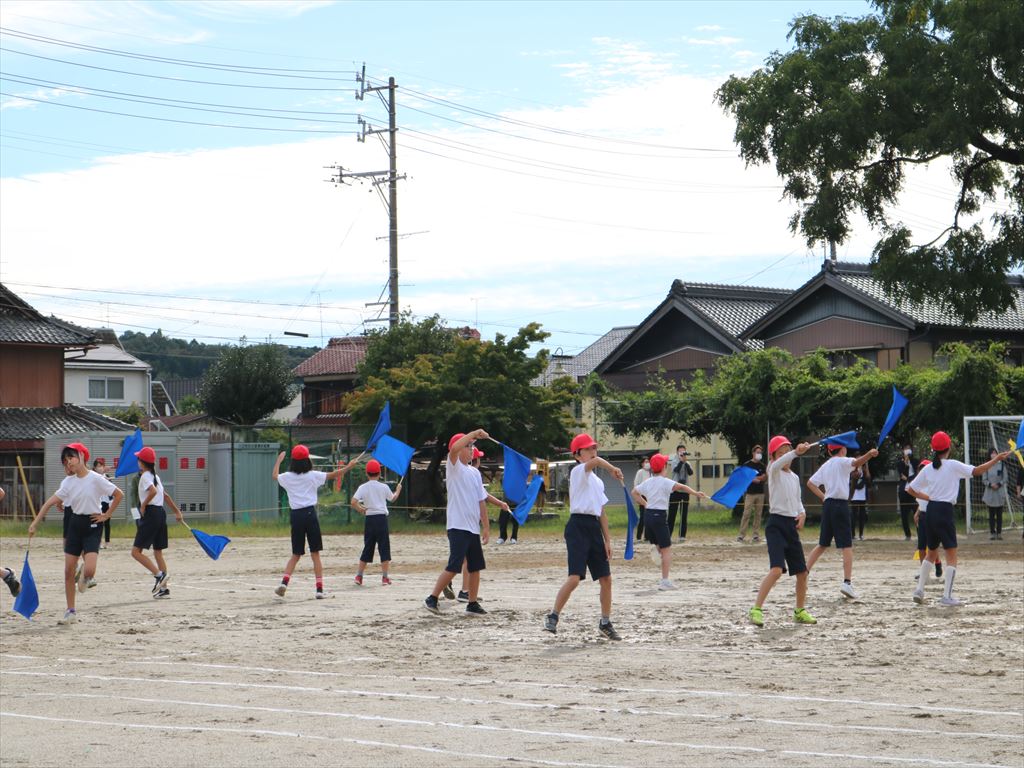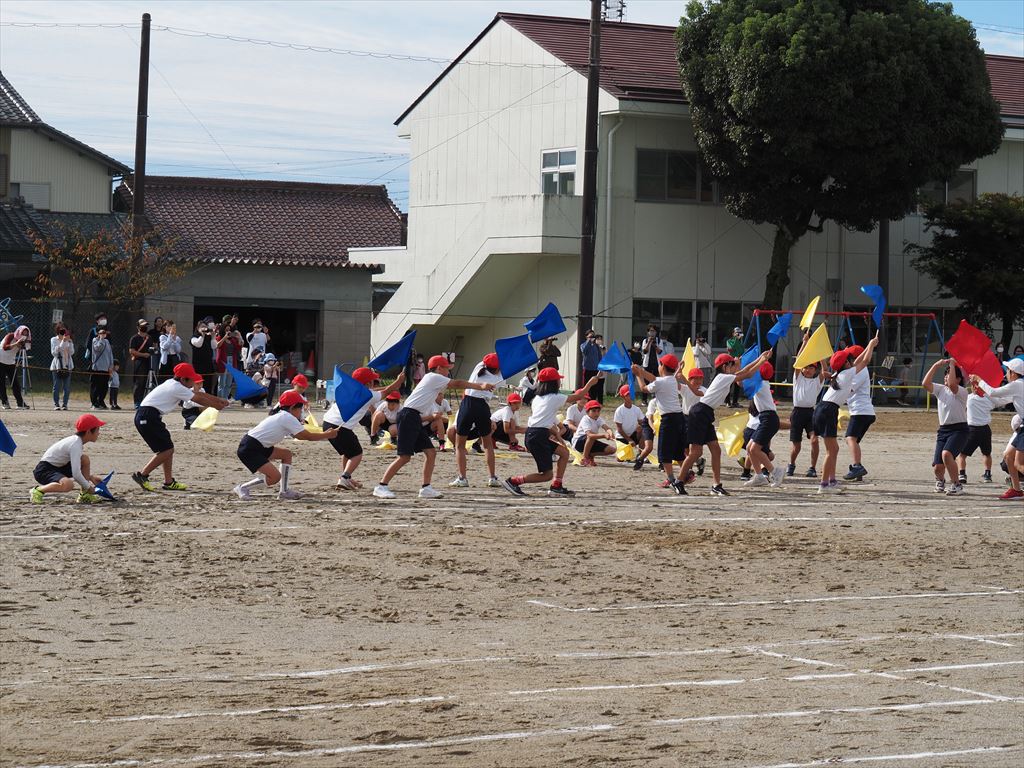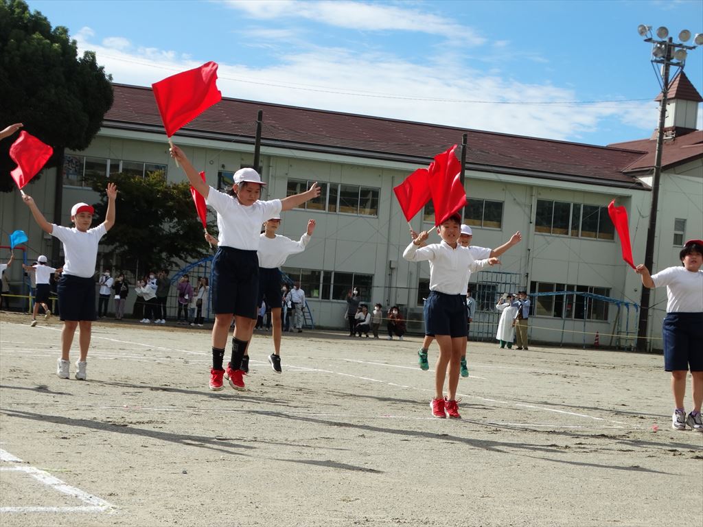 ・中学年の団体演技は「mela!~僕だってヒーローになりたい~」です。アップテンポな曲に合わせて、きびきびかっこよく踊りました。全員の動きが見事にそろい美しい演技となりました。