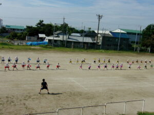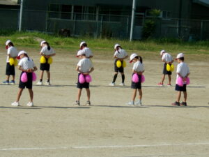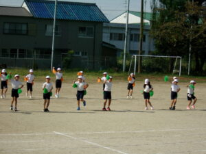 低学年が、運動場で団体演技の練習をスタートしました。本時は、演技する位置を確認することを中心に練習しました。まだまだ、暑いですが、運動会に向けて頑張っています。