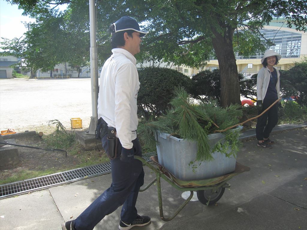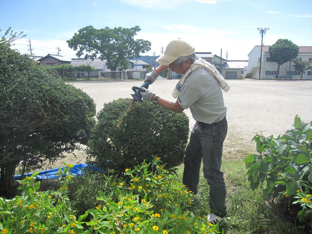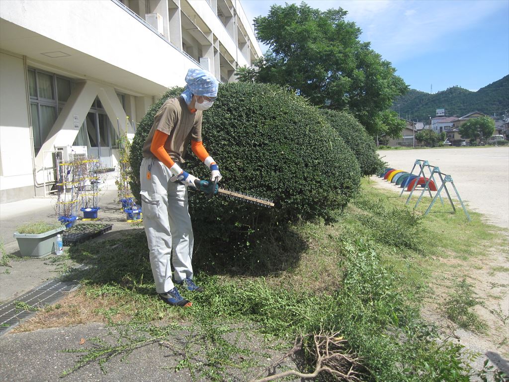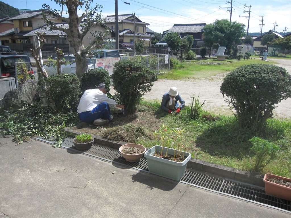 10月2日(月) 地域のボランティアの方々が、校舎前の植木の剪定や草の除去など、日頃手入れしにくいところを中心に、環境整備をしてくださいました。