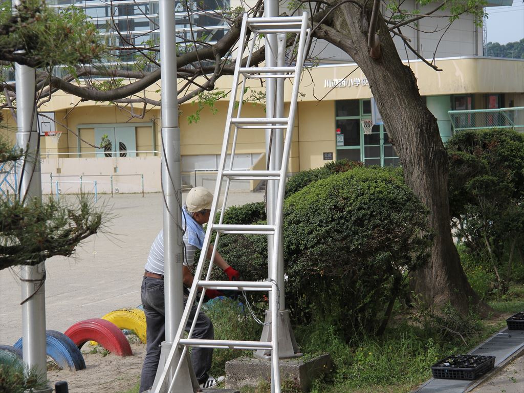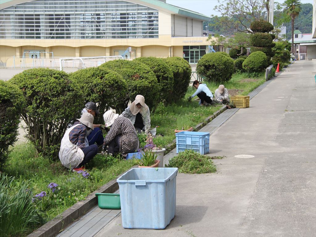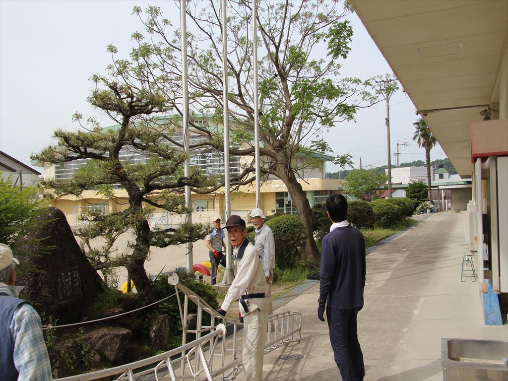 4月29日(月)に、地域のボランティアの方々が、校舎前の植木の剪定などの環境整備をしてくださいました。