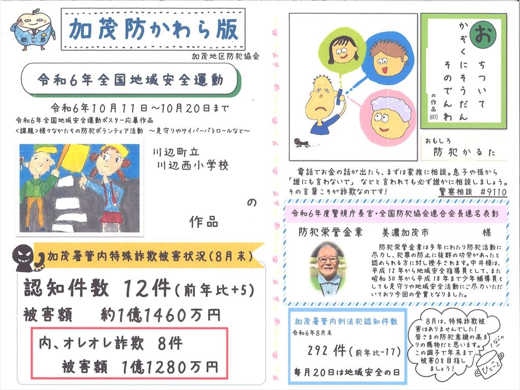 川辺西小の児童の描いた防犯ポスターが、加茂地区防犯協会のかわら版に掲載されました。