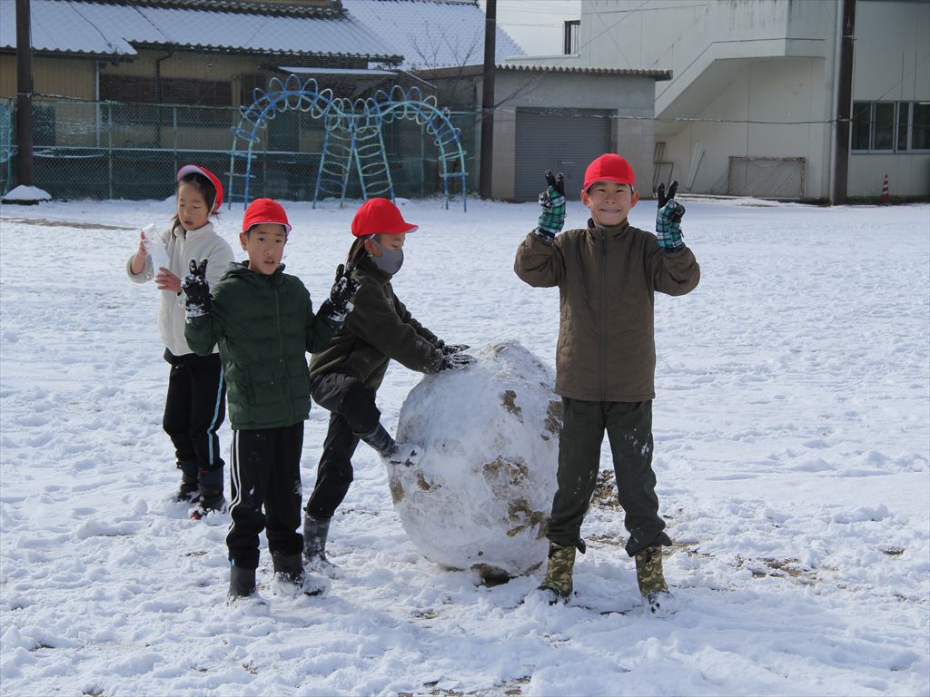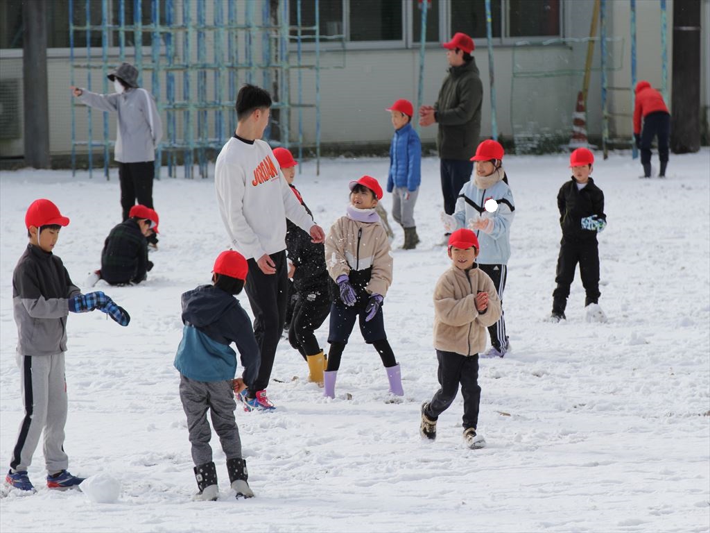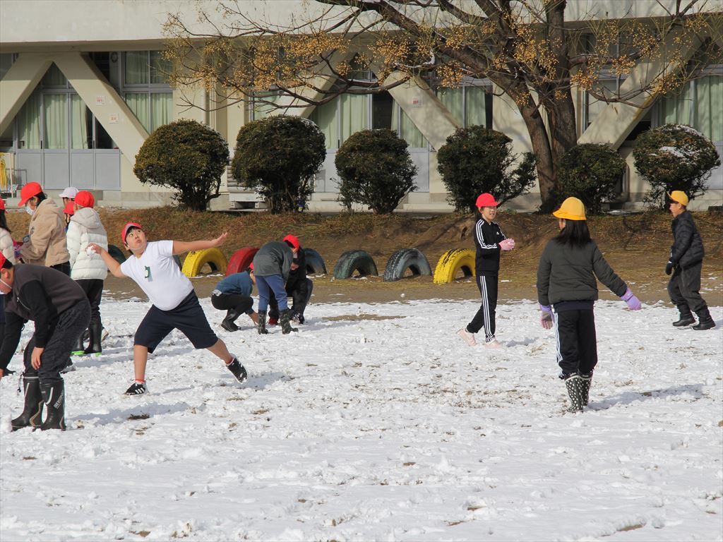 1月10日に雪が降りました。休み時間の運動場は、今年初めての雪で遊ぶ子どもたちの姿であふれました。