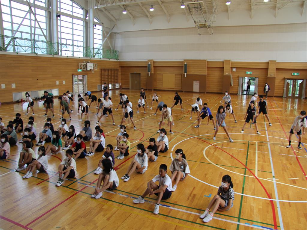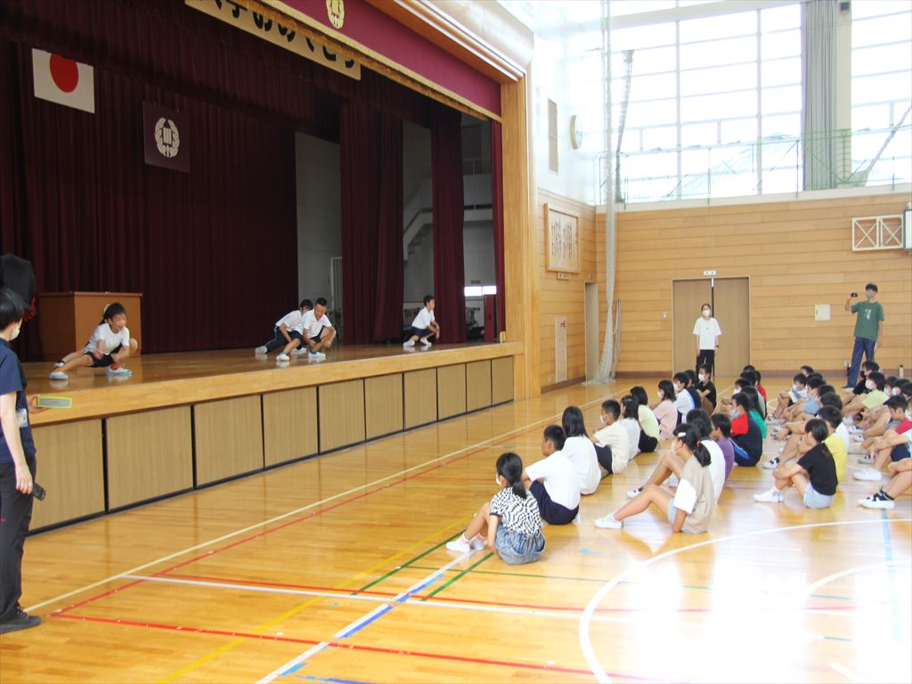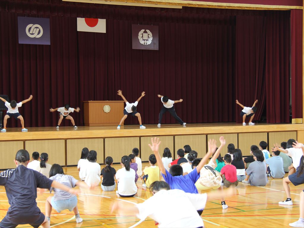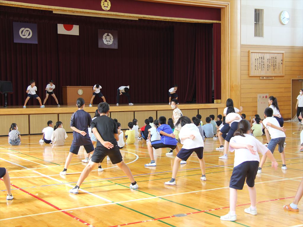 7月19日(水)朝の活動の時間に、6年生が5年生にソーラン節を披露しました。