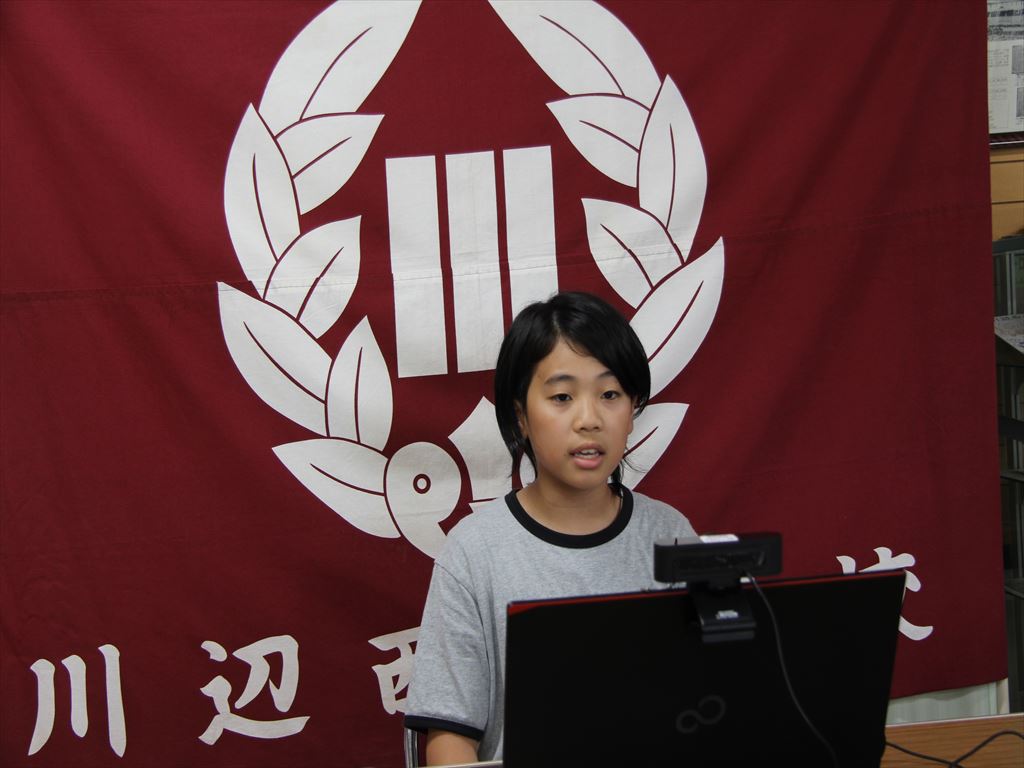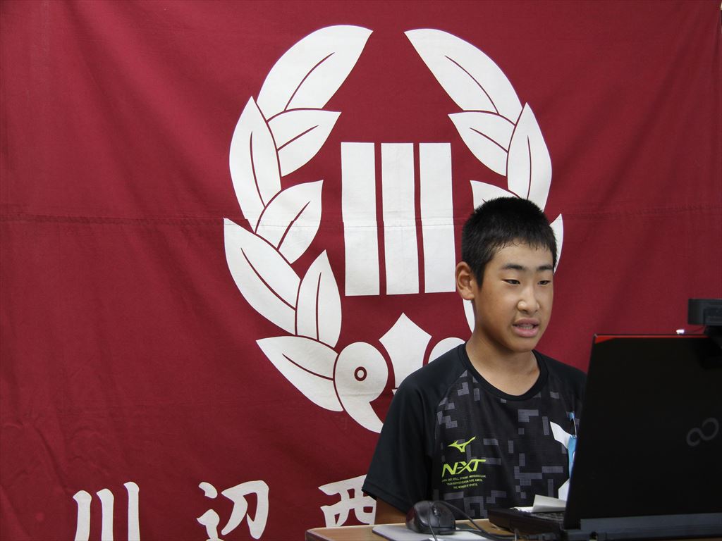 はじめに6年生代表児童2名が1学期の成果や課題を話しました。