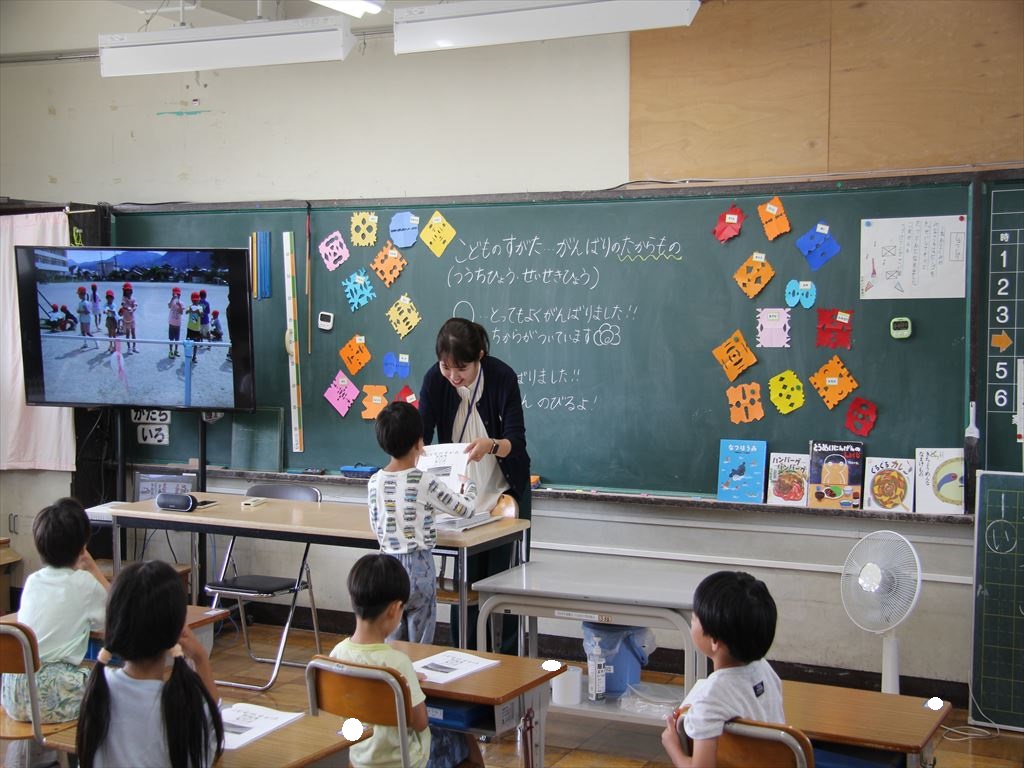 終業式の後は、学級活動を行い、担任から「こどものすがた」を受け取り、一人一人が1学期に高まったことを確認することができました。