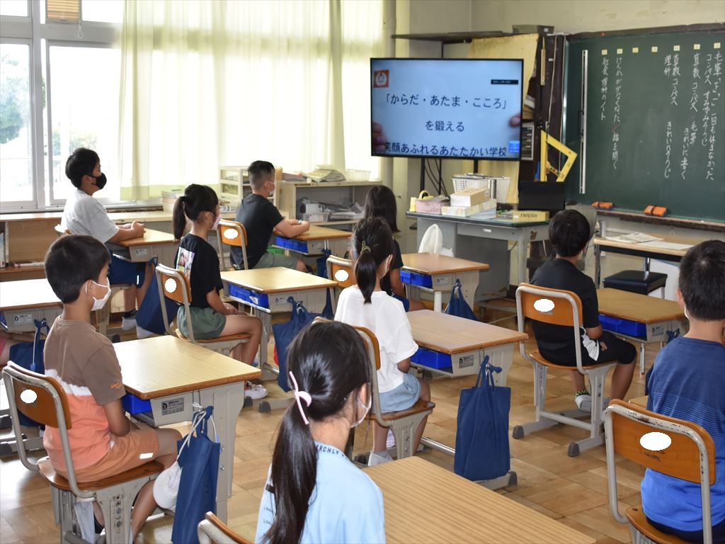 1学期に積み上げてきた西小学校の宝物や夏休みに気を付けることを全校で確認しました。