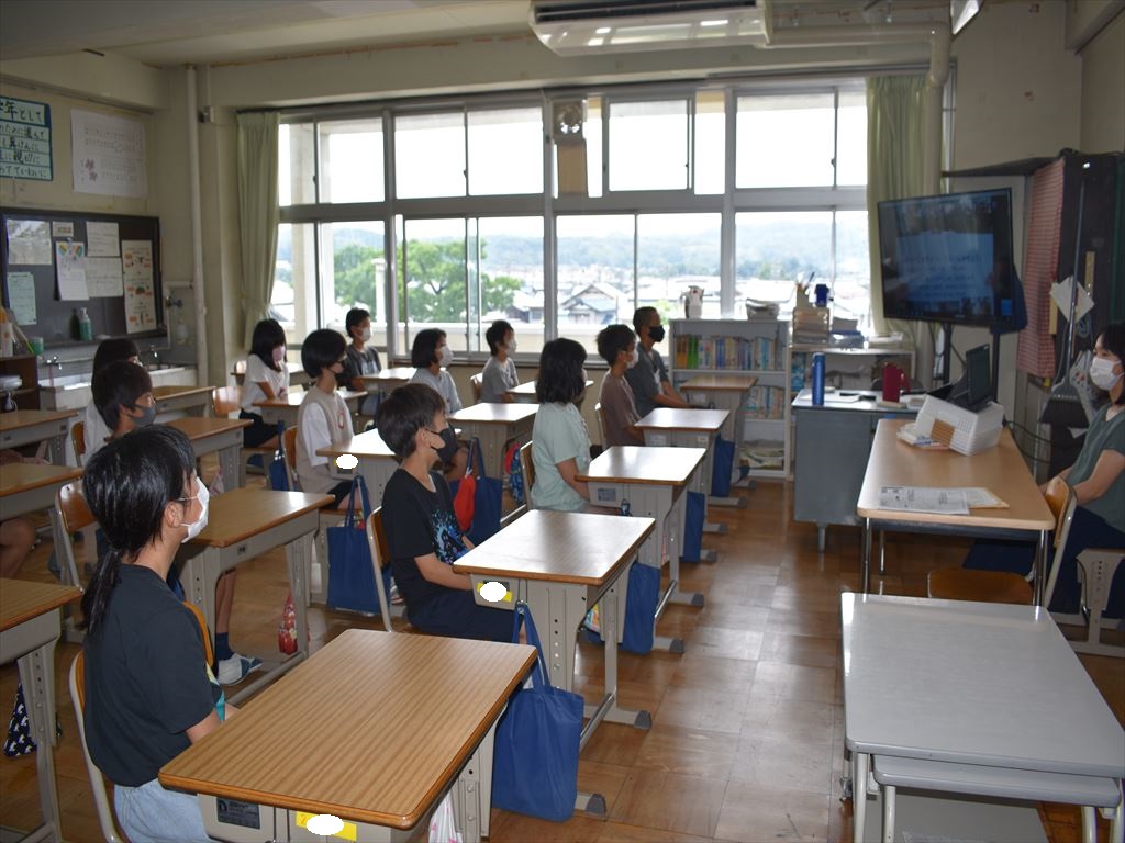 終業式は、全校が体育館に集まることを避け、リモートで各教室をつないで行いました。