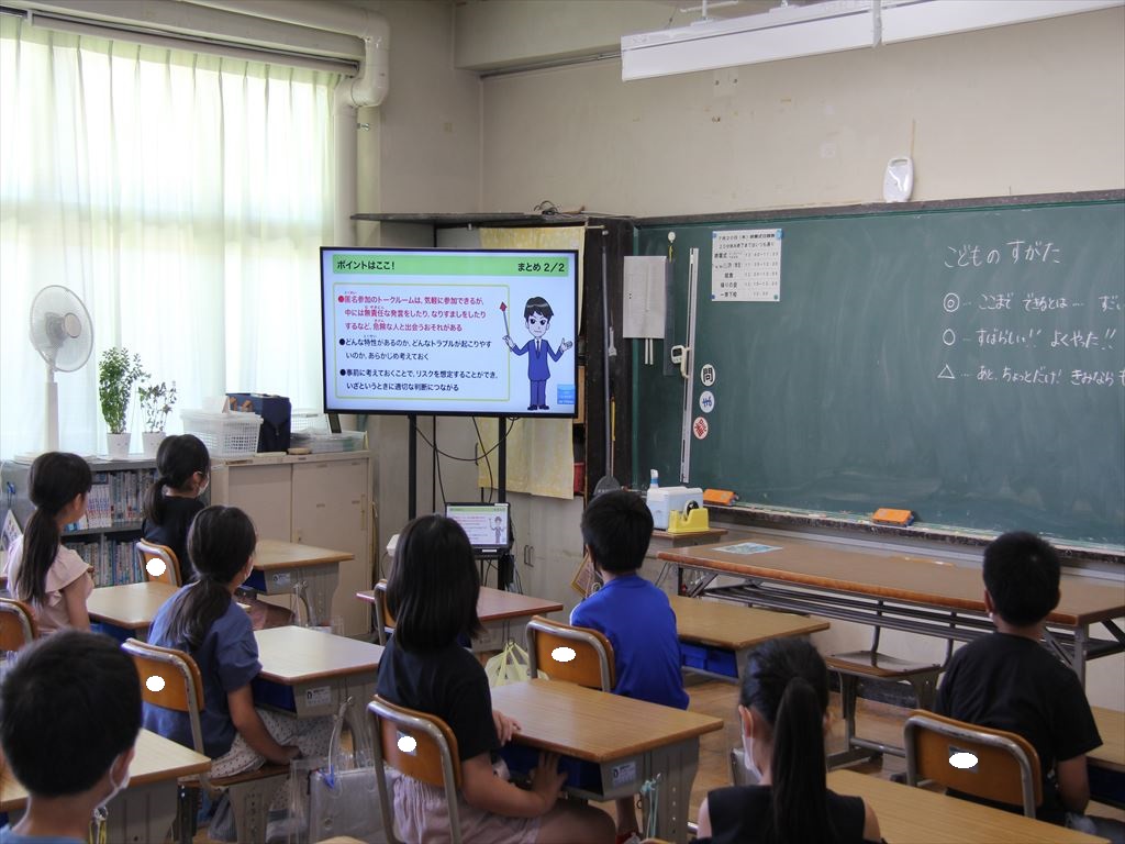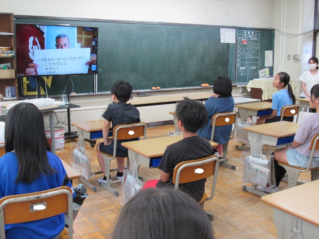 式では、児童代表の話や校長の話、生徒指導主事の話を聞きました。